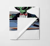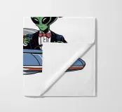 Due alieni dei cartoni animati sono raffigurati in vacanza: uno chiede indicazioni e l'altro risponde che le chiederà al prossimo gigante gassoso. Sono raffigurati all'interno di un disco volante con il titolo "ALIEN VACATION" sopra di loro.