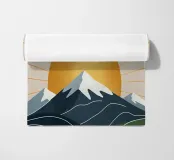 Un'illustrazione splendidamente stratificata e minimalista che presenta una maestosa catena montuosa innevata e i pendii inferiori ondulati, racchiusi in una forma astratta a goccia. Il disegno utilizza colori naturali e tenui e sottolinea i contorni sereni del paesaggio selvaggio. Minimalista, Astratto, Geometrico, Arte stratificata, Line Art, Tavolozza tenue, Contemporaneo, Montagna, Vetta, Picco, Alpi, Natura, Paesaggio, Selvaggio, All'aperto, Escursione, Neve, Foresta, Colline, Sereno, Calmo, Tranquillo, Toni terrosi, Contorni, Arte murale moderna, Poster di viaggio.
