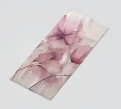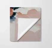 Un delicato pezzo floreale astratto con una forma centrale simile a un fiore in bianco e rosa tenue, con linee più scure simili a inchiostro che si irradiano verso l'esterno, come se svelassero l'anima di un fiore su uno sfondo tenue. Stile Melissa Herrington.