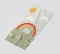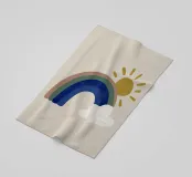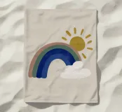 Questa illustrazione minimalista mostra un arcobaleno e nuvole bianche su uno sfondo beige, ideale per la camera di un bambino o di una bambina. Nei caldi colori della terra, il design boho solare irradia cordialità e pace. Perfetto per l'interior design scandinavo, porta un tocco di natura in casa.