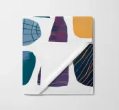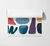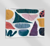 Una composizione astratta di forme assemblate con varie texture e motivi, tra cui griglie e punti. La sofisticata palette di colori e la disposizione equilibrata le conferiscono un'atmosfera da metà secolo moderno.