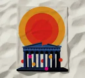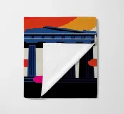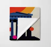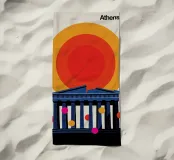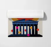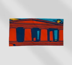 Una moderna interpretazione dell'iconico Partenone con un vibrante sfondo di tramonto. Ideale per gli amanti dell'architettura, dei viaggi e del design minimalista.