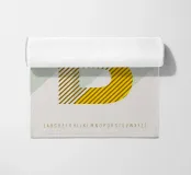 B-TYPEFACE in un design senza tempo - poster tipografico con colori vivaci e un gioco di forme sullo sfondo.