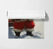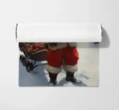 Babbo Natale si trova nel villaggio invernale innevato, assorto in una lunga lista di desideri. Dietro di lui c'è una slitta piena di regali colorati, pronta per la grande notte di Natale. La scena pittoresca irradia attesa, magia e calore: un simbolo affettuoso delle festività e dello spirito di donazione.