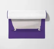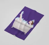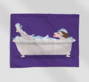 Illustrazione di una donna nella vasca da bagno. Il motivo è realizzato su sfondo trasparente. In questo modo puoi scegliere il tuo colore di sfondo preferito. Se non ti piace il viola, sostituiscilo con un altro colore.