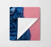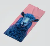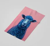 Un'immagine sorprendente di una pecora blu surreale con lana strutturata, che si staglia su uno sfondo rosa brillante. L'audace contrasto cromatico e la composizione minimalista creano un'estetica giocosa e moderna.