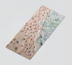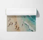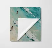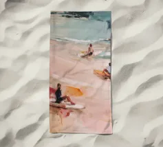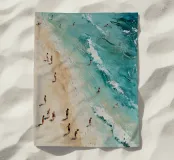Da una posizione elevata, delicate figure danzano tra sabbia e mare in un'armoniosa performance di luce e colore. Ogni piccola forma, resa con pennellate strutturate, si muove al ritmo delle dolci onde che lambiscono la riva. "Beachside Ballet" celebra la bellezza fugace dei rituali estivi, dove le sabbie illuminate dal sole e le acque cerulee si uniscono in una coreografia elegante e onirica.