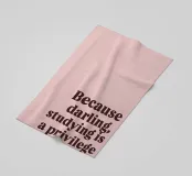 "La frase 'Perché tesoro, studiare è un privilegio' è presentata in un carattere serif in grassetto, marrone scuro, su uno sfondo rosa tenue",