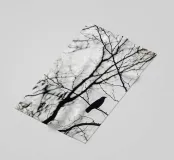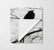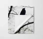 Uccello su un albero. Seduto su un ramo. Immagine in bianco e nero nei Paesi Bassi.