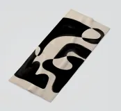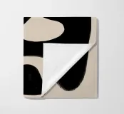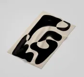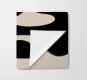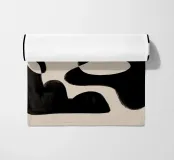 Opera d'arte astratta che presenta forme organiche nere su uno sfondo beige, creando un gioco visivamente accattivante tra spazi positivi e negativi.