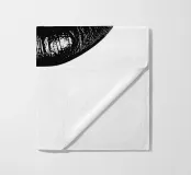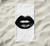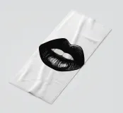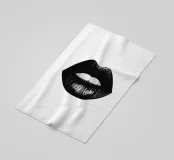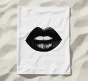 Un poster minimalista in bianco e nero con una bocca da baciare e labbra nere incarna l'eleganza e lo stile del mondo della moda, ispirato a Vogue.