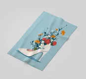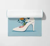 Un'illustrazione vibrante e potenziante di uno stiletto che sboccia con fiori colorati, simbolo dell'amore per se stesse, della crescita e della forza femminile. Lo sfondo blu minimale esalta la composizione audace ma delicata, trasformando la moda in una metafora di fiducia e bellezza. Perfetto per gli interni che celebrano la positività, l'emancipazione e l'individualità: un pezzo moderno che ispira le donne a prosperare con grazia e stile.