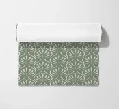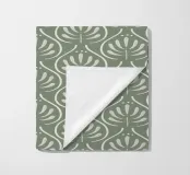 Semplice motivo bohémien di foglie astratte in verde salvia e bianco.