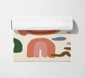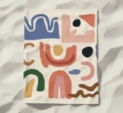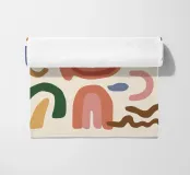 A collection of abstract, earthy toned shapes, including arches, lines, and curves, arranged in a balanced, bohemian style composition.