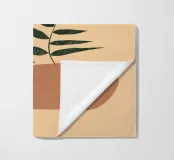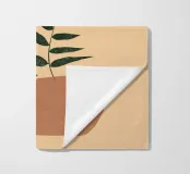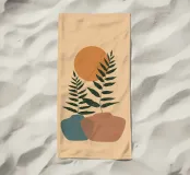 Scoprite l'elegante design dei "vasi Boho". Quest'opera d'arte minimalista ma accattivante presenta due eleganti piante in vaso con foglie lunghe e ricurve disposte in vasi di forma diversa: uno blu e uno marrone. Sullo sfondo spicca un grande disco circolare di colore arancione, che rappresenta simbolicamente il sole e dona calore e vivacità alla scena. Lo sfondo beige costituisce una base calma e neutra che lascia trasparire i colori delle piante e dei vasi, creando un quadro d'insieme armonioso e moderno.