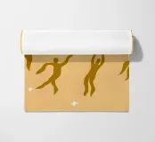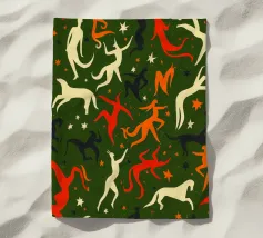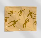 Silhouetted figures are depicted in mid-dance, seemingly floating against a soft peach background. Each figure exudes movement and energy, creating a harmonious and rhythmic composition.