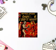 Oops!... I Did It Again Pop Art Comic Cover | Britney Spears | Y2K Nostalgia Wall Art "Oops!... L'ho fatto di nuovo, ho giocato con il tuo cuore...". Questa audace e nostalgica stampa digitale pop art reimmagina la canzone di Britney Spears "Oops!... I Did It Again" come copertina di un fumetto d'epoca, con un'atmosfera drammatica da space girl, texture a mezzatinta e un lato impertinente del cuore spezzato. Con la sua iconica tuta rossa e una galassia di atteggiamenti, questo pezzo incanala tutto ciò che ha reso iconica la cultura pop dell'anno 2000: scintillio, dramma e totale energia da protagonista.