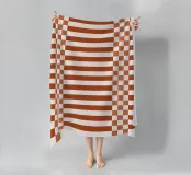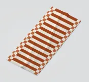 Caratterizzato da un'elegante miscela di quadretti geometrici e linee pulite nei toni dell'arancione bruciato, questo design conferisce un'accogliente raffinatezza e un fascino moderno di metà secolo a qualsiasi stanza o accessorio. Perfetto per gli amanti dell'arredamento eclettico e contemporaneo che apprezzano lo stile senza tempo con un tocco vivace.