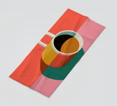 Godetevi l'aroma fragrante e il gusto ricco del caffè. Design con chicchi di caffè e una tazza di caffè da leccarsi i baffi.