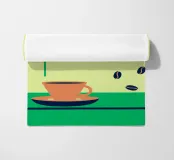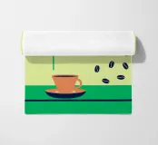Godetevi l'aroma fragrante e il gusto ricco del caffè. Design con chicchi di caffè e una tazza di caffè da leccarsi i baffi.