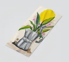 La classica caffettiera Moka è elegantemente presentata come un vaso che contiene una singola e delicata margherita bianca, unendo i rituali del caffè e la bellezza della natura in una natura morta minimalista.