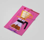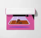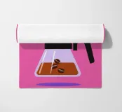 Illustrazione grafica di una caffettiera in azione, su uno sfondo rosa intenso. La rappresentazione moderna e stilizzata è un perfetto omaggio all'arte e al rituale del caffè speciale.