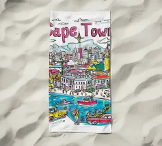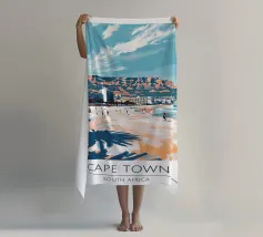 Design da viaggio decorativo e minimalista di Città del Capo per chi ama la capitale del Sudafrica. Idea regalo ideale con la famosa Table Mountain e altri punti di riferimento e attrazioni del paese africano per chi ama viaggiare in Sudafrica.