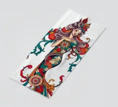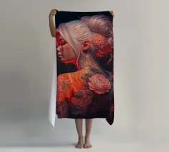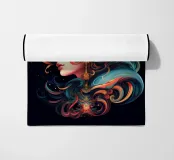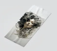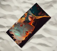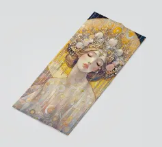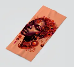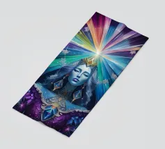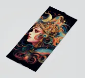 Uno squisito ritratto fantasy che unisce eleganza regale e simbolismo cosmico. La Sovrana Celeste raffigura una potente figura femminile adornata con un copricapo dorato e ornato da motivi lunari e celestiali. Nastri fluenti di turchese, oro e cremisi si intrecciano intorno a lei, creando un'aura radiosa di misticismo e forza. Una celebrazione della femminilità divina, dello stile art nouveau e dell'intricato artigianato digitale.
