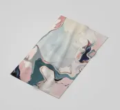 A dynamic abstract artwork with swirling forms in shades of blue, pink, black, and white, resembling a flowing celestial river, cosmic nebula, or a marbled liquid surface with a sense of movement and depth.