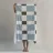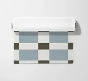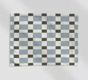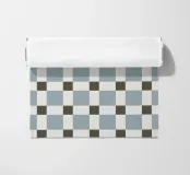 A checkerboard pattern fills the entire space, composed of alternating squares in shades of gray and blue. The uniform grid creates a sense of symmetry and balance.