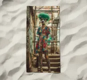 Nel cuore del vicolo, circondata da impalcature come scheletri metallici, Chloé danza leggera nel suo abito arioso e multicolore. Il vento gioca con i tessuti, facendoli ondeggiare come petali in volo. Alle sue spalle, il freddo acciaio e il legno incrociato formano un contrasto industriale con la sua grazia effimera. I colori vivaci dell'abito si mescolano con le ombre grigie, catturando un fugace momento di bellezza sotto l'occhio vigile del fotografo.