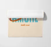Una poesia d'amore visiva in tre colori e due lingue: La parola "AMORE" si staglia grande e azzurra sullo sfondo, come un silenzioso grido di desiderio. Davanti, "Ciao" cattura lo sguardo in un forte rosso arancio, con un affascinante effetto ombra che crea profondità e movimento. Sotto, quasi come una firma: "studio scusi" in un caldo giallo senape. Lo sfondo beige conferisce al motivo una calma mediterranea, come un tramonto in Liguria.