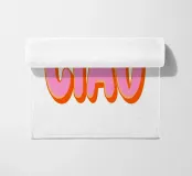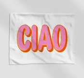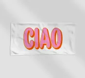 Questo vivace design presenta la parola "Ciao" in un audace carattere di ispirazione retrò con caratteri rosa acceso e un sorprendente contorno arancione.