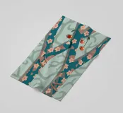 Questa splendida illustrazione presenta un rigoglioso albero di ciliegio con frutti rossi pendenti, che crea un'atmosfera pacifica e rasserenante.