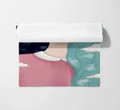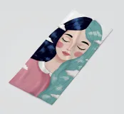 A serene woman with blue-black hair is illustrated with floating clouds around her head, embodying daydreams and tranquility.