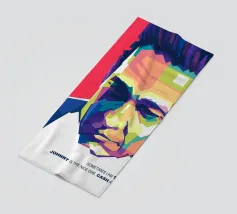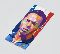 Coco in stile WPAP è un ritratto geometrico audace e colorato del famoso calciatore francese. Utilizzando tinte vivaci e forme spigolose, l'opera d'arte WPAP (Wedha's Pop Art Portrait) cattura la calma determinazione e il look iconico di Coco, riflettendo la sua eleganza, forza e abilità sul campo da calcio.
