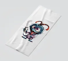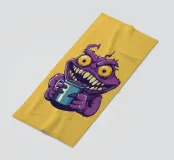 Un bizzarro mostro viola con denti aguzzi, occhi gialli e un sorriso malizioso che stringe una tazza di caffè blu. Il giocoso stile da cartone animato aggiunge un'atmosfera divertente e stravagante, perfetta per progetti umoristici o a tema caffeina.