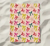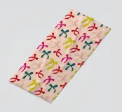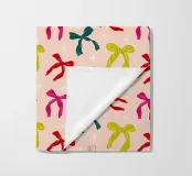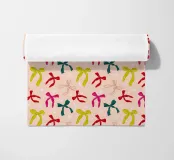Un motivo giocoso di fiocchi colorati in rosso, rosa, verde acqua, verde lime e pesca, sparsi su un morbido sfondo color pesca con accenti di stelle bianche. Questo disegno allegro e festoso dona un fascino stravagante, perfetto per aggiungere un tocco femminile e gioioso al vostro spazio. Ideale per confezioni regalo, decorazioni ispirate alla moda o per chiunque ami un motivo audace ma delicato. Creato da showmemars