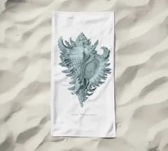 Conchiglie marine blu e beige su sfondo ecru. Disegno di crostacei.