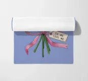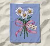 A sweet and romantic illustration of a bouquet of white daisies tied with a pink ribbon. A small tag that reads 'to my love' is attached, making this a perfect depiction of a heartfelt, romantic gesture.