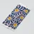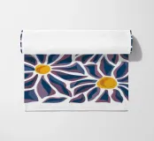 A seamless, pop art style pattern of stylized white and yellow daisies against a dark blue background. The composition is bold, graphic, and has a cheerful, retro, 60s flower power vibe.