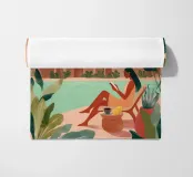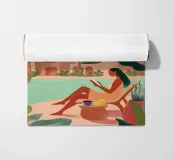 Nella calma dorata di un'oasi nel deserto, una donna siede a bordo piscina, immersa nel suo libro, incorniciata da un'abbondante vegetazione e da un'architettura tranquilla. La calda tavolozza di terracotta e il sole gentile evocano quiete e solitudine, mentre la scena sussurra di mattinate lente e pomeriggi senza tempo. Con un caffè, limoni e la quiete come unica compagnia, l'autrice diventa un ritratto della pace interiore, un momento sospeso tra i capitoli, sia letterari che personali.