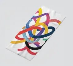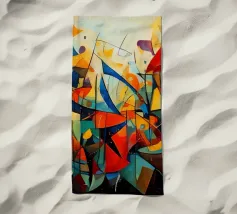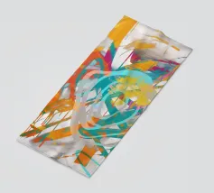 Questo disegno presenta un'intricata disposizione di linee fluide e colori vivaci, che creano un senso di movimento ed energia. Lo sfondo è neutro, per migliorare l'impatto visivo.