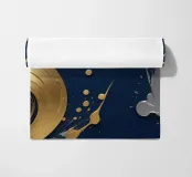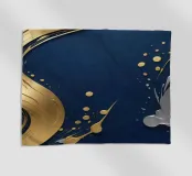 Questo elegante sfondo astratto presenta elementi d'oro e d'argento che si alternano ad accenti circolari su una ricca tela blu, creando un impatto visivo di grande effetto adatto a progetti creativi.