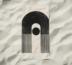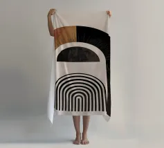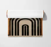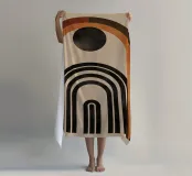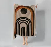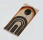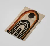 Questo design colpisce per l'armonia degli archi e per la palette di colori caldi e terrosi in marrone, nero e arancione. Le linee geometriche pulite e il sottile tocco vintage lo rendono un'attrazione senza tempo per qualsiasi casa moderna o nostalgica. Perfetto per l'arte da parete, i cuscini o gli accessori per la casa, per dare alla vostra stanza uno stile elegante e unico.