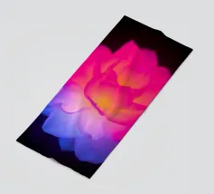 Due forme astratte di rosa sono in mostra su uno sfondo scuro, illuminato da sfumature luminose di viola e blu. Questo design artistico crea uno sfondo per telefono visivamente accattivante.