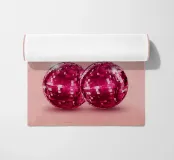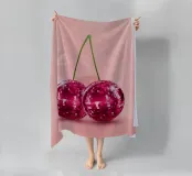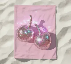 A vibrant artwork featuring sparkling disco ball cherries on a soft pink background. Mixing fruity sweetness with retro party vibes, this design brings a fun, quirky twist to classic pop art.