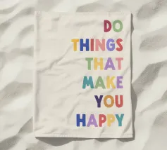 Poche parole e tanta verità! Un design che si adatta al motto della vita. FAI DI PIÙ DI CIÒ CHE TI RENDE FELICE. Fai di più di ciò che ti rende felice! Una tipografia minimalista con un tocco di colore versato addolcisce la vostra giornata.