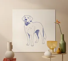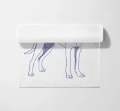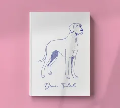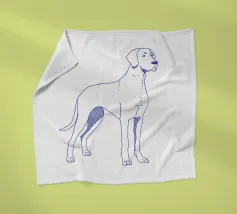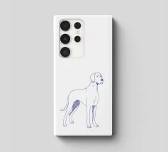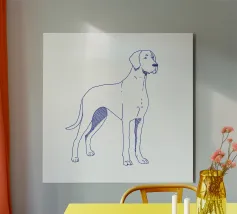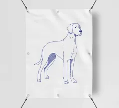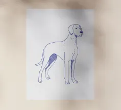 Disegno al tratto blu di un alano. Il motivo del cane è più adatto su sfondi molto chiari.