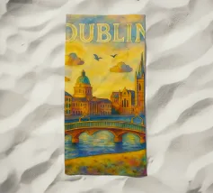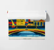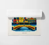 A bold, graphic celebration of Dublin, captured through clean geometry and vibrant colour blocking. Iconic landmarks line the river in layered harmony, with strong silhouettes and rhythmic shapes creating a sense of movement and balance. The composition feels lively yet grounded, reflecting Dublin’s blend of history, culture, and contemporary energy.